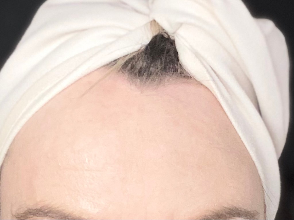 Next up, Trinny’s miracle blur. This basically claims to blur fine lines round the mouth and on forehead. It does. See below pic of my forehead. It didn’t take care of ALL the lines around my mouth though, just the little ones. There are two big lines that withstood any amount of miracle blur I tried to trowel in there. But by and large it does a job.