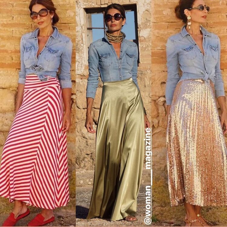 And I suddenly realised I needed a denim shirt. I don’t have skirts exactly like this, but I do have a lot of slip skirts and a lovely silver pleated skirt from Reiss that would do the trick. It wasn’t hard to find exactly what I was looking for.