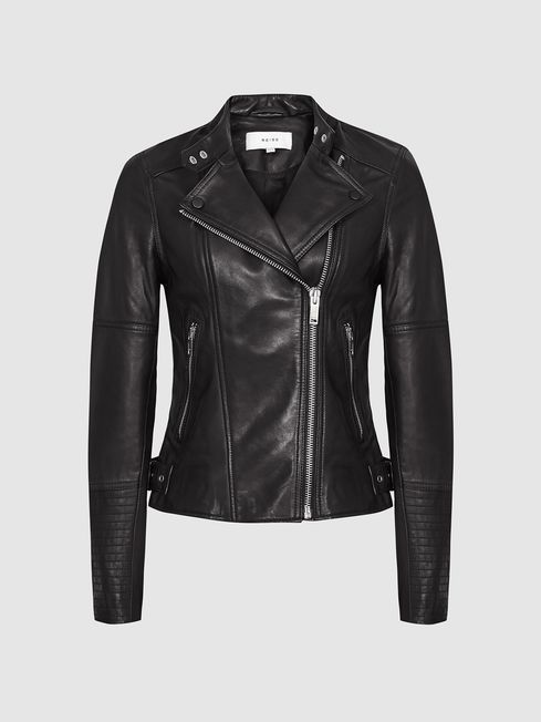 Reiss Tallis Leather Biker Jacket in Black £378