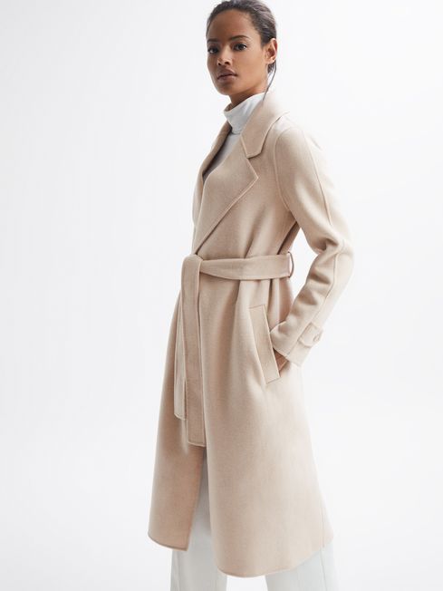 Reiss Agnes belted wool coat in pink £348